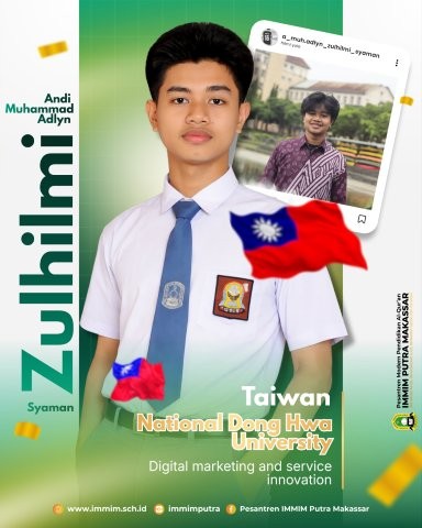 Santri pertama, Andi Muhammad Adlyn, dinyatakan lolos untuk melanjutkan studi di National Dong Hwa University, Taiwan, pada program Digital Marketing and Service Innovation. Program ini merupakan salah satu bidang strategis di era digital saat ini, yang menuntut kreativitas, kemampuan analisis, serta pemahaman mendalam tentang pemasaran berbasis teknologi.